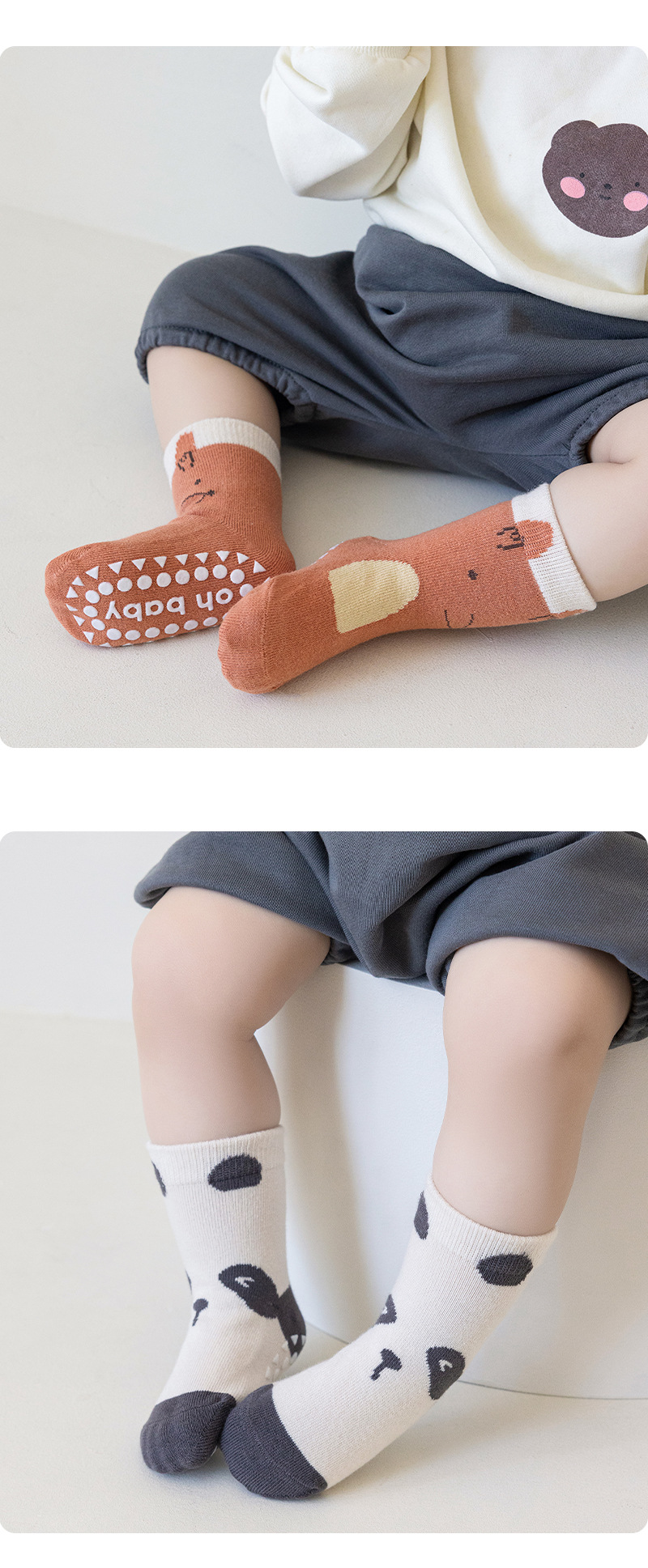 Silicone Anti-Slip: Features silicone dots on soles for enhanced grip and safety during walking or play